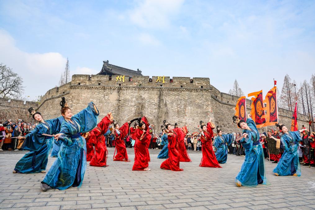 “荆州十二时辰”入城仪式在荆州古城上演。(张梦瑶 摄)